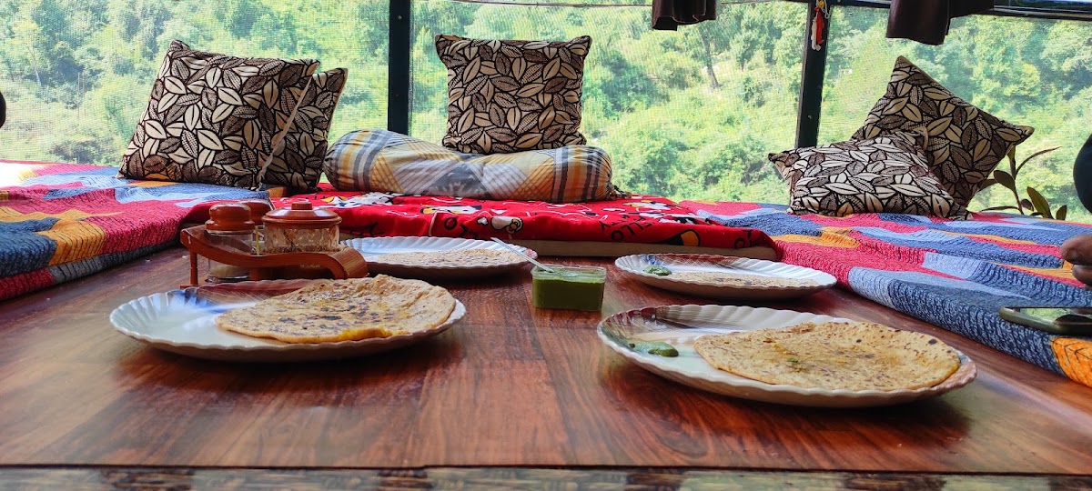 Enhancing your dining experience, the vibrant decor created by the owner, Mr. Abhishek, pairs perfectly with the stunning backdrop of the Bandarpunch Mountain Range and the soothing sounds of the Ganges.